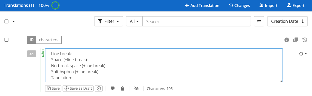 Non-printable characters, also known as formatting marks or hidden characters, are used for content design in text files or user interfaces and aren’t displayed at printing or in the rendered UI. Some of the most common ones are line breaks, spaces, non-breaking spaces, tabulators and soft hyphens.